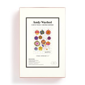 Puzzle ve tvaru adventního kalendáře obsahuje 12 kusů puzzlí po 80 kouscích. Toto puzzle od Andyho Warhola je skvělým dárkem pro milovníky výtvarného umění a grafik z roku 1950 s vánočním motivem. Puzzle v anglickém jazyce. Puzzle jsou opatřeny matnou povrchovou úpravou, která zajišťuje za všech okolností věrné podání detailů i barev. Jejich zadní strana je potažena hladkým, na dotek příjemným povrchem, díky němuž se při skladování rozloženého puzzle netvoří prach. Dodáváno v robustní kartonové krabičce vyrobené z recyklovaného kartonu a udržitelně získaných materiálů s certifikací FSC®. Hlavní vlastnosti: obsahuje12x80 precizně vyřezaných dílkůvyrobeno s použitím recyklovaných a udržitelně získaných materiálů FSC®potištěno netoxickými inkoustyprémiová kvalita puzzlerozvíjí logické myšlení a motoriku Značka a certifikát FSC® (Forest Stewardship Council) zaručuje, že dřevo, ze kterého byl produkt vyroben, nebylo vytěženo nelegálně a pochází z lesů obhospodařovaných šetrným či přírodě blízkým způsobem, ve kterém jsou dodržovány přísné environmentální a sociální požadavky. Značka FSC® na výrobku znamená, že svým nákupem pomáháte chránit lesy a podporujete šetrné, odpovědné či přírodě blízké hospodaření, díky kterému jsou naše lesy stabilnější, zdravější, mají přirozenou druhovou skladbu a lépe odolávají negativním následkům klimatických změn.