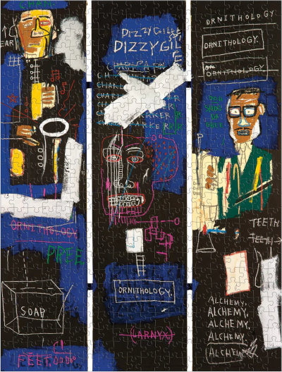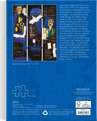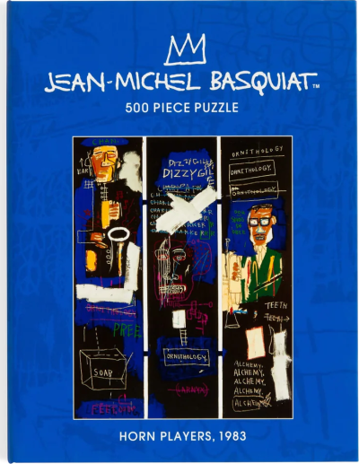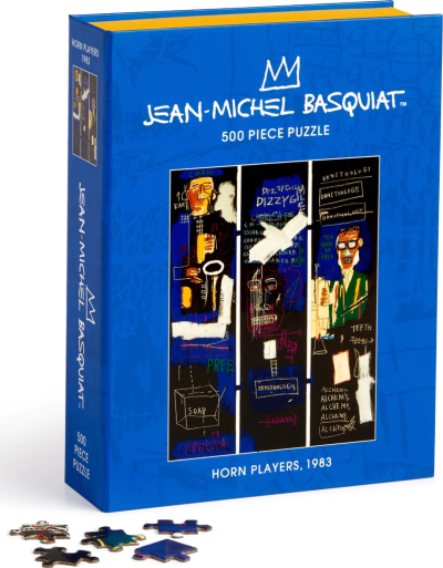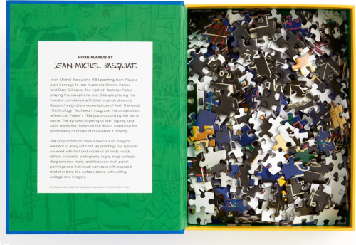 Puzzle Basquiat: Hráči na lesní roh v obalu ve tvaru knihy je obměnou klasického 500 dílného puzzle.