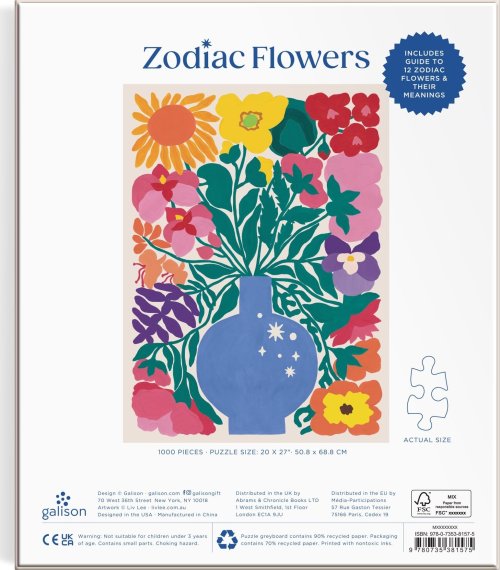 Představujeme Vám puzzle se vzorem květin zvěrokruhu, které ilustroval Lev Lee. Puzzle je zabalené v pevné krabici, která je vhodná k uskladnění, aby se žádný dílek neztratil. Hlavní vlastnosti: obsahuje 1000 dílkůpečlivě vybraný motiv od renomovaných tvůrců a umělcůobsahuje návodný obrázekvyrobeno s použitím recyklovaných a udržitelně získaných materiálů s certifikací FSCtištěno netoxickými inkousty Značka a certifikát FSC® (Forest Stewardship Council) zaručuje, že dřevo, ze kterého byl produkt vyroben, nebylo vytěženo nelegálně a pochází z lesů obhospodařovaných šetrným či přírodě blízkým způsobem, ve kterém jsou dodržovány přísné environmentální a sociální požadavky. Značka FSC® na výrobku znamená, že svým nákupem pomáháte chránit lesy a podporujete šetrné, odpovědné či přírodě blízké hospodaření, díky kterému jsou naše lesy stabilnější, zdravější, mají přirozenou druhovou skladbu a lépe odolávají negativním následkům klimatických změn.