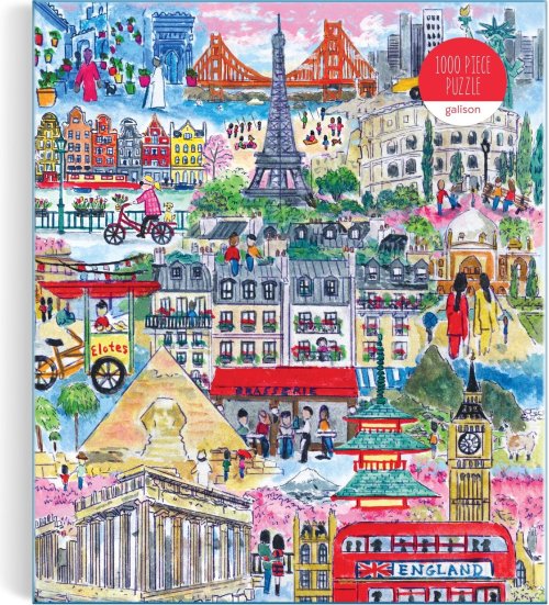 Vydejte se na strhující cestu kolem světa díky uměleckému puzzle podle návrhu Michaela Storringse, které představuje známá města. Nahlédněte do rušných ulic, navštivte slavné památky a vychutnejte si atmosféru oblíbených destinací. Ať už hledáte zábavnou aktivitu pro deštivý den, odpočinek od každodenních starostí nebo jedinečný dárek pro milovanou osobu, toto puzzle potěší a stane se atraktivním doplňkem každého interiéru. Dílky jsou pevné a odolné a přesně do sebe zapadnou. Puzzle je vyrobeno zodpovědně za použití vysokého podílu recyklovaného materiálu (90 % puzzle a 70 % obal) s certifikací FSC® a je potištěno netoxickými barvami. Hlavní vlastnosti: 1000 dílkůnámět Michael Storringszabaleno v pevné krabičce vyrobeno s použitím recyklovaných a udržitelně získaných materiálů s certifikací FSC®potištěno netoxickými barvamirozvíjí logické myšlení, motoriku a koordinaci ruka-oko Značka a certifikát FSC® (Forest Stewardship Council) zaručuje, že dřevo, ze kterého byl produkt vyroben, nebylo vytěženo nelegálně a pochází z lesů obhospodařovaných šetrným či přírodě blízkým způsobem, ve kterém jsou dodržovány přísné environmentální a sociální požadavky. Značka FSC® na výrobku znamená, že svým nákupem pomáháte chránit lesy a podporujete šetrné, odpovědné či přírodě blízké hospodaření, díky kterému jsou naše lesy stabilnější, zdravější, mají přirozenou druhovou skladbu a lépe odolávají negativním následkům klimatických změn.