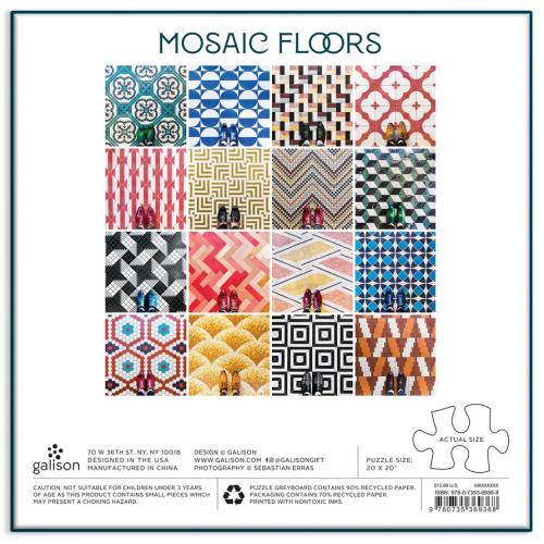 500dílné puzzle představuje náročnou koláž s 16 ozdobnými vzory podlahy. Puzzle je baleno v pevných krabicích s matným povrchem. Umělec Sebastian Erras. Hlavní vlastnosti: Obsahuje 500 dílkůPotištěno netoxickými inkoustyPrémiová kvalita puzzleJednotlivé dílky do sebe přesně pasujíRozvíjí logické myšlení a motoriku