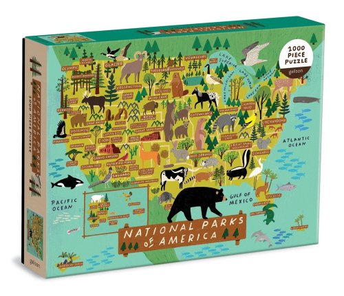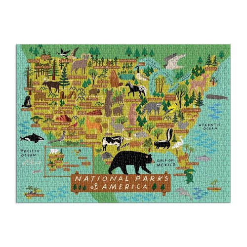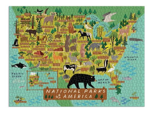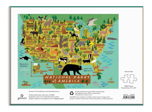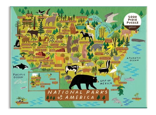 Puzzle Národní parky Ameriky o 1000 dílcích obsahuje ilustraci od nejprodávanější umělkyně Anne Bentley a vykresluje mapku Spojených států amerických spolu s umístěním velkých parků a zvířat v této zemi. Puzzle Galison jsou baleny v pevných krabicích s matným povrchem pro lehké použití i skladování. Ideální také jako dárek. Hlavní vlastnosti: 1000 dílkůsoučástí balení je návodný obrázek rozvíjí logické myšlení a motoriku