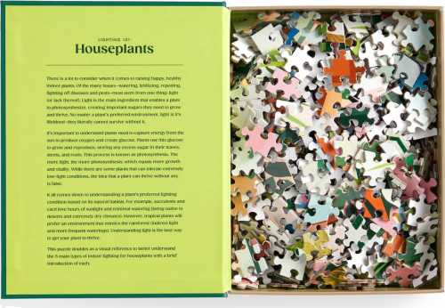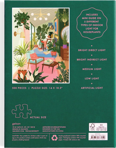 Rádi skládáte puzzle a jste také milovníkem květin? V tom případě je pro Vás ideální puzzle s motivem pokojových rostlin a jejich správné rozmístění v interiéru. Která rostlina snáší přímé sluneční světlo, která dává přednost stínu a které stačí umělé osvětlení? To všechno budete vědět díky obrázku a informacím v angličtině, které jsou součástí krabičky s magnetickým zavíráním, ve které je toto zajímavé a poučné puzzle uloženo. Krabička se bude hezky vyjímat na poličce či konferenčním stolku. Puzzle s motivem pokojových rostlin je perfektní dárek pro milovníky botaniky a puzzle, bylo vyrobeno zodpovědně za použití vysokého podílu recyklovaného papíru s certifikací FSC® a potištěno netoxickými barvami na bázi sóji. Hlavní vlastnosti: pro milovníky květin a puzzlezabaleno v krabičce s magnetickým zavíránímsoučástí balení je návodný obrázek vyrobeno za použití materiálů s certifikací FSC®potištěno netoxickými barvami na bázi sójirozvíjí logické myšlení a motoriku Značka a certifikát FSC® (Forest Stewardship Council) zaručuje, že dřevo, ze kterého byl produkt vyroben, nebylo vytěženo nelegálně a pochází z lesů obhospodařovaných šetrným či přírodě blízkým způsobem, ve kterém jsou dodržovány přísné environmentální a sociální požadavky. Značka FSC® na výrobku znamená, že svým nákupem pomáháte chránit lesy a podporujete šetrné, odpovědné či přírodě blízké hospodaření, díky kterému jsou naše lesy stabilnější, zdravější, mají přirozenou druhovou skladbu a lépe odolávají negativním následkům klimatických změn.