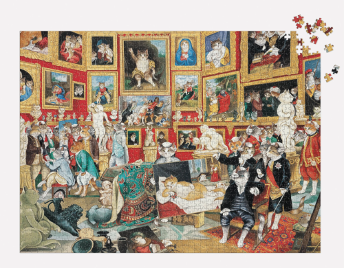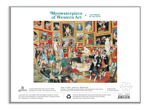 Toto puzzle s motivem obrazu Tribuna Uffizi v evropském stylu je opravdovým mňaustrovským dílem. Puzzle s 1500 dílky s vtipnou kočičí interpretací obrazu od Johana Zoffanyho. Puzzle Galison jsou zabaleny v matných, pevných krabicích, jsou perfektní jako dárek. Můžete ji také použít jako úložný prostor. V balení také obrázek plně sestaveného puzzle jako předloha.Hlavní vlastnosti: Obsahuje 1500 dílkůPrémiová kvalita puzzleJednotlivé dílky do sebe přesně pasujíRozvíjí logické myšlení a motoriku