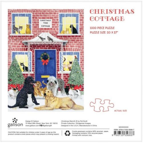 Užijte si Vánoce se svátečním puzzle chaloupka. Poskládejte a odhalte malé i velké domácí mazlíčky, kteří jsou stejně, jako dům, připraveni na oslavy. Puzzle s 1000 dílky ilustroval Pat Scott. Rozměry puzzle po sestavení 508 x 686 mm. V balení letáček s informacemi o umělci a dílu, v angličtině. Hlavní vlastnosti: ilustrace Pat Scottobsahuje 1000 dílkůprémiová kvalita puzzlejednotlivé dílky do sebe přesně pasujírozvíjí logické myšlení a motoriku