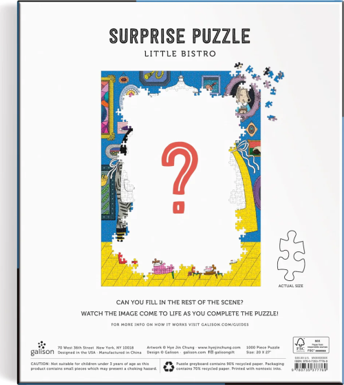Puzzle, při kterém nevíte co skládáte. Kompletní scéna se totiž objeví až při skládání puzzle, které je skutečně jedinečným zážitkem. Rozměr složeného puzzle cca 51 x 69 cm