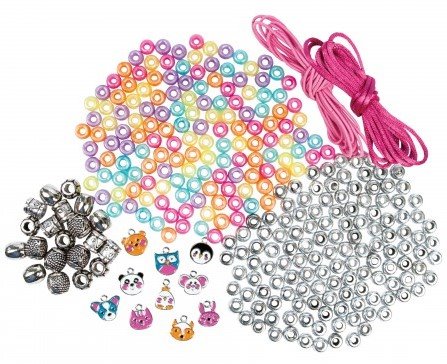 Kreativní sada náramků s korálky a přívěsky. Na provázek si můžete jakkoliv navléct korálky a ozdobit náramek speciálním přívěskem ve tvaru zvířátka. Vznikne tak úžasný náramek, který se hodí ke každému oblečení. Balení obsahuje: