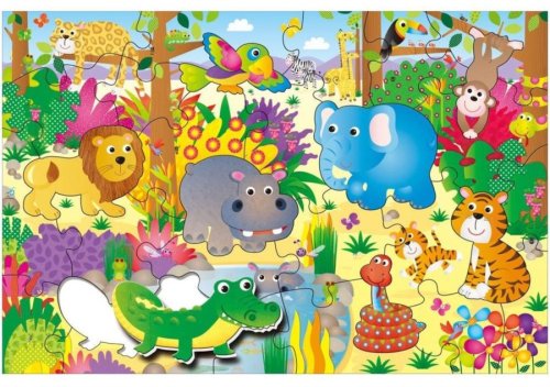 Poskládej si puzzle s králem zvířat - lvem a jeho kamarády (krokodýlem, slonem, nebo třeba tygří rodinkou a žirafami).