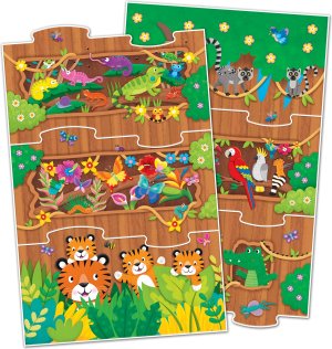 Unikátní koncept puzzle s neomezenými možnostmi a variacemi! Kreativní puzzle skládané do tvaru domečku na stromě. Děti mohou začít s dolním dílkem a připojit 10 dalších dílků v libovolném pořadí, následovaných vrchním dílkem a vytvořit si tak svůj domeček pokaždé jiný. Hrubé dílky jsou navrženy tak, aby byly snadno ovladatelné pro mladší děti a zlepšovaly jejich koordinaci ruky a oka. Celkově jsou tyto puzzle skvělým způsobem, jak podpořit kreativní hru a řešení problémů u dětí a zároveň podporovat jejich jemnou motoriku a kognitivní vývoj. Tyto puzzle mají velikost 18 x 108 cm a jsou skvělým doplňkem každé herny nebo třídy, nabízejí zábavnou a interaktivní aktivitu pro děti. Rozměr složeného puzzle cca 18 x 108 cm