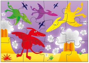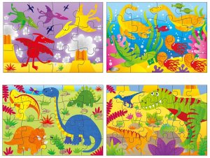 Puzzle v praktickém kufříku s progresivními dílky. Balení obsahuje čtyři odlišné obrázky s pravěkých obrů, vždy s jiným počtem dílků. Skládání puzzle napomáhá rozvoji logického myšlení a procvičování trpělivosti. Vhodné pro děti již od 3 let. Dodáváno v kartonu s praktickým plastovým uchem pro snadné přenášení. Rozměr složeného puzzle cca 21 x 15 cm