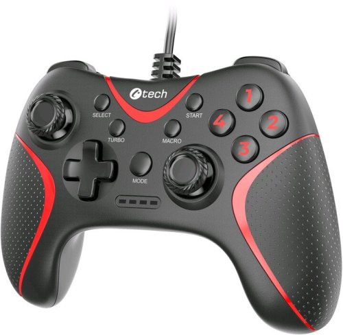 Gamepad C-TECH THEON Vám nabídne ještě lepší herní zážitky. 15 tlačítek, dva analogové joysticky, osmisměrný ovladač a 2 vibrační motorky. Zní to jako standard? Budete velmi mile překvapeni. THEON má unikátní design, díky kterému nabídne něco, co u konkurence nenajdete: vespod gamepadu další 2 programovatelná makro tlačítka. Přímo z gamepadu jim můžete pomocí funkce makro přiřadit sekvenci stisku několika kláves.