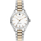 Dámské náramkové hodinky Napájení z baterie Strojek MIYOTA 2036 Průměr pouzdra 34,0 mm Pouzdro ve tvaru kruhu Ocelové pouzdro Stříbrná barva pouzdra Ocelový tah Stříbrná/zlatá barva tahu Ručičkový ciferník Bílá barva ciferníku Ciferník s dvanácti indexy Materiál skla - minerální sklo Odolné proti vodě během sprchování a mytí