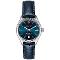 Dámské náramkové hodinky Napájení z baterie Strojek 2115 Průměr pouzdra 34,0 mm Pouzdro ve tvaru kruhu Ocelové pouzdro Stříbrná barva pouzdra Kožený tah Modrá barva tahu Ručičkový ciferník Modrá barva ciferníku Ciferník s dvanácti indexy Materiál skla - minerální sklo Odolné proti vodě během sprchování a mytí Datum