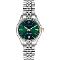 Dámské náramkové hodinky Napájení z baterie Strojek 2115 Průměr pouzdra 34,0 mm Pouzdro ve tvaru kruhu Ocelové pouzdro Stříbrná barva pouzdra Ocelový tah Stříbrná barva tahu Ručičkový ciferník Zelená barva ciferníku Ciferník s dvanácti indexy Materiál skla - minerální sklo Odolné proti vodě během sprchování a mytí Datum