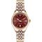 Dámské náramkové hodinky Napájení z baterie Strojek 2115 Průměr pouzdra 34,0 mm Pouzdro ve tvaru kruhu Ocelové pouzdro Zlatavá barva pouzdra Ocelový tah Zlatavá barva tahu Ručičkový ciferník Fialová barva ciferníku Ciferník s dvanácti indexy Materiál skla - minerální sklo Odolné proti vodě během sprchování a mytí Datum