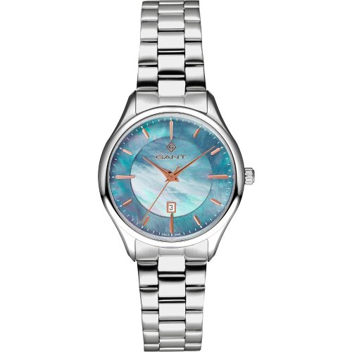 Dámské náramkové hodinky Napájení z baterie Strojek GL10 Průměr pouzdra 33,0 mm Pouzdro ve tvaru kruhu Ocelové pouzdro Stříbrná barva pouzdra Ocelový tah Stříbrná barva tahu Ručičkový ciferník Modrá barva ciferníku Ciferník s dvanácti indexy Materiál skla - minerální sklo Odolné proti vodě během sprchování a mytí Datum