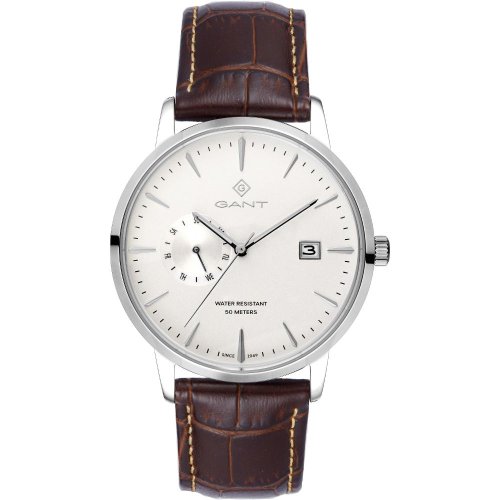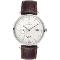 Pánské náramkové hodinky Napájení z baterie Strojek MIYOTA JP27 Průměr pouzdra 43,0 mm Pouzdro ve tvaru kruhu Ocelové pouzdro Stříbrná barva pouzdra Kožený tah Hnědá barva tahu Ručičkový ciferník Bílá barva ciferníku Ciferník s dvanácti indexy Materiál skla - minerální sklo Odolné proti vodě během sprchování a mytí Datum
