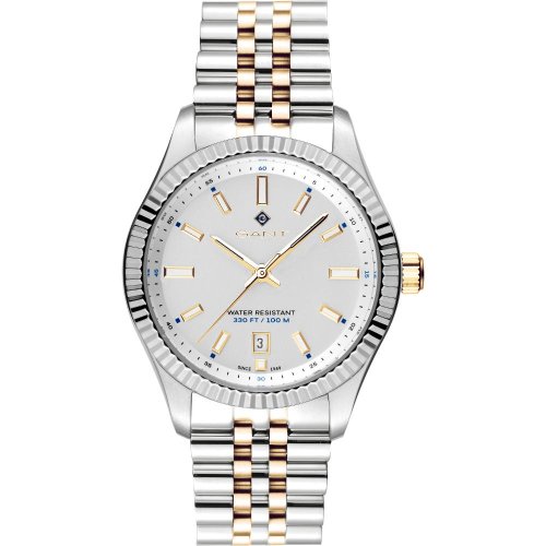 Dámské náramkové hodinky Napájení z baterie Strojek MIYOTA 2115 Průměr pouzdra 37,5 mm Pouzdro ve tvaru kruhu Ocelové pouzdro Stříbrná barva pouzdra Ocelový tah Stříbrná/zlatá barva tahu Ručičkový ciferník Stříbrná barva ciferníku Ciferník s dvanácti indexy Materiál skla - minerální sklo Odolné proti vodě během plavání Datum