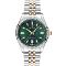 Dámské náramkové hodinky Napájení z baterie Strojek MIYOTA 2115 Průměr pouzdra 37,5 mm Pouzdro ve tvaru kruhu Ocelové pouzdro Stříbrná barva pouzdra Ocelový tah Stříbrná/zlatá barva tahu Ručičkový ciferník Zelená barva ciferníku Ciferník s dvanácti indexy Materiál skla - minerální sklo Odolné proti vodě během plavání Datum