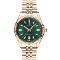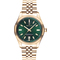 Dámské náramkové hodinky Napájení z baterie Strojek MIYOTA 2115 Průměr pouzdra 37,5 mm Pouzdro ve tvaru kruhu Ocelové pouzdro Růžové zlato barva pouzdra Ocelový tah Růžové zlato barva tahu Ručičkový ciferník Zelená barva ciferníku Ciferník s dvanácti indexy Materiál skla - minerální sklo Odolné proti vodě během plavání Datum