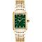 Dámské náramkové hodinky Napájení z baterie Strojek SEIKO Y121 Průměr pouzdra 24,0 mm Pouzdro ve tvaru obdelníku Ocelové pouzdro Zlatavá barva pouzdra Ocelový tah Zlatavá barva tahu Ručičkový ciferník Zelená barva ciferníku Ciferník s dvanácti indexy Materiál skla - minerální sklo Odolné proti vodě při běžném nošení