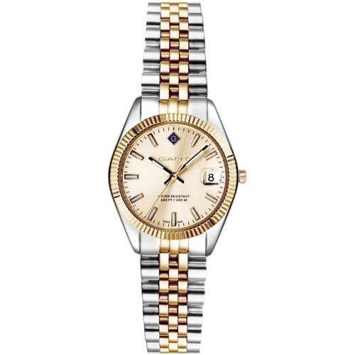 Dámské náramkové hodinky Napájení z baterie Strojek MIYOTA GN12 Průměr pouzdra 28,0 mm Pouzdro ve tvaru kruhu Ocelové pouzdro Stříbrná/zlatá barva pouzdra Ocelový tah Stříbrná/zlatá barva tahu Ručičkový ciferník Zlatavá barva ciferníku Ciferník s dvanácti indexy Materiál skla - minerální sklo Odolné proti vodě během plavání Datum