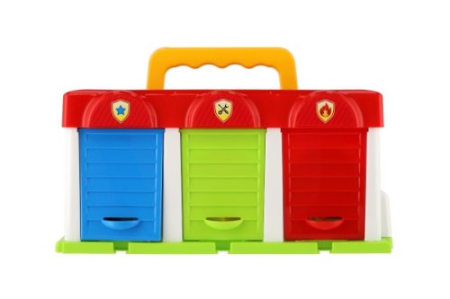 Potřebuješ mít autíčka stále při ruce a v bezpečí? Tato garáž s autíčky a praktickým držátkem je ta pravá! Pod třemi dveřmi se schovávají tři auta - hasiči, osobák a dodávka. V garáži najdete část pro snadnější vjezd a výjezd aut do své kóje. S těmito plastovými autíčky s garáží si užiješ mnoho zábavy! Rozměr krabice: 27 x 14 x 15 cm Vhodné pro děti od 3 let
