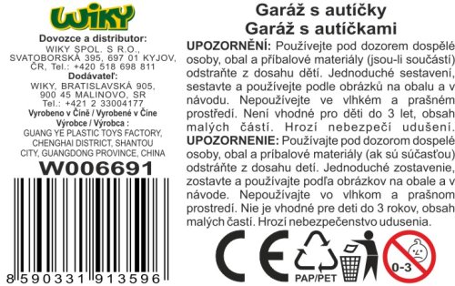 Balení obsahuje skládací garáž a 2 plastová auta. Volná kola.