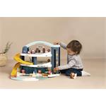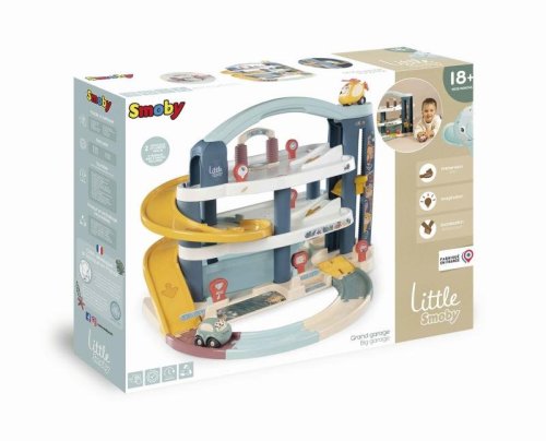 Velká patrová parkovací garáž Little Smoby zabavý vaše děti na dlouhé hodiny plné zábavy. Na 3 podlažích je co objevovat. Mini autíčka pohodlně cestují výtahem, sjíždí přes široké tratě nebo tajnou cestou, kterou můžete snadno otevřít pákou. Součástí je myčka, servisní dílna se zvedací plošinou, benzínová pumpa a úložný box. Sada obsahuje mini autíčko a mini vrtulník. Velké vícepodlažní parkoviště je vyrobeno v osvědčené Smoby kvalitě ze zdravotně nezávadných materiálů.