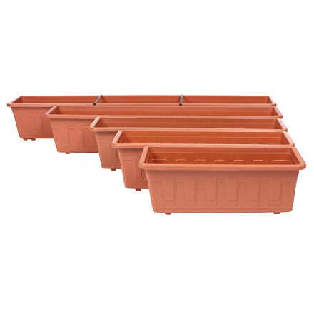 Truhlík Garden z odolného plastového materiálu je určen nejen pro zahrádkáře, ale všechny, kteří si chtějí na svůj balkón či terasu přinést kousek zelené zahrady. Klasický truhlík nabízíme v několika délkách a oblíbených barevných variantách - hnědá a terakota. Plastový truhlík je lehký, drží si stálý tvar a je vhodný jak na vnitřní, tak na venkovní použití. Ve dně truhlíku je možné vyvrtat drenážní otvory pro odtok přebytečné dešťové vody. Pro zavěšení truhlíku na zábradlí doporučujeme pořídit závěsné držáky. Pokud budete mít truhlík umístěný na parapetu, stole či na zemi, doporučujeme přikoupit misku pod truhlík Garden, která bude zadržovat přebytečnou vodu (v případě, že máte vyvrtané drenážní otvory). Parametry: Garden 40 Délka: 39 cm Šířka: 17 cm Výška: 15 cm Garden 50 Délka: 49 cm Šířka: 17 cm Výška: 15 cm Garden 60 Délka: 59 cm Šířka: 17 cm Výška: 15 cm Garden 80 Délka: 78 cm Šířka: 17 cm Výška: 15 cm Garden 100 Délka: 98 cm Šířka: 18 cm Výška: 15 cm