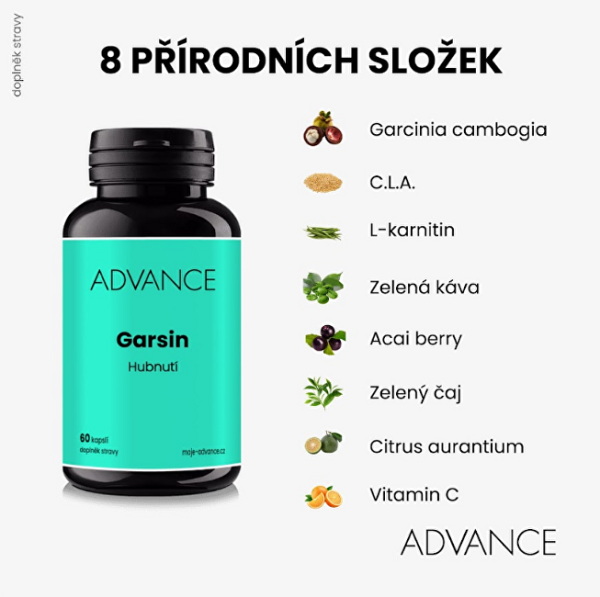 Garsin obsahuje unikátní kombinaci 8 látek, které přispívají k metabolismu tuků a kontrole tělesné hmotnosti.