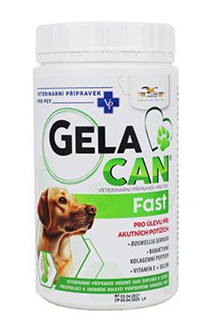 Doplňkové krmivo při akutním bolestivém stavu. Gelacan® Fast je doplňkové krmivo s bioaktivními kolagenními peptidy, extraktem z Boswellie serraty, vitamíny E, C a selenem, vhodné k akutní aplikaci při bolestivosti pohybového aparátu psů. Gelacan® Fast obsahuje komplex účinných složek pozitivně ovlivňujících zánětlivé procesy v kloubních, šlachových a vazivových tkáních, zvyšujících kloubní pohyblivost a omezujících bolestivost kloubů v klidu i při pohybu. Indikace: