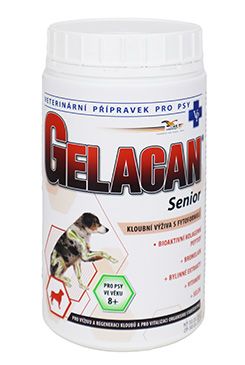 Gelacan® Senior je veterinární přípravek - nutraceutikum s bioaktivními kolagenními peptidy a bylinnými extrakty pro výživu a regeneraci pohybového aparátu a pro celkové posílení a vitalizaci organismu psů.