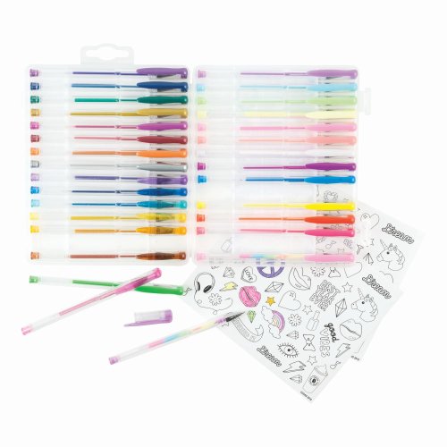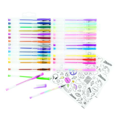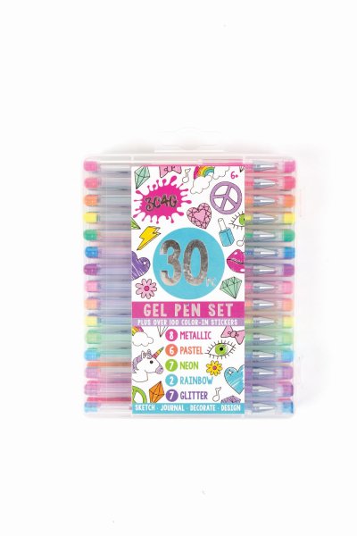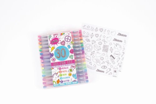 Balení obsahuje 30 gelových per. 8 metalických, 6 pastelových, 7 neonových, 2 duhové, 7 třpytivých a 100 samolepek, které si sami vybarvíte! Vhodné od 6 let.