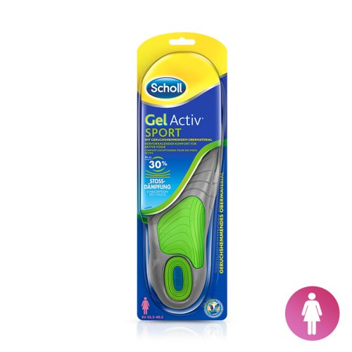 Gelové vložky do bot Scholl Sport určené ženám se speciální technologií GelActive která účinně tlumí nárazy v oblasti pat, kolen a kotníků a pomáhá snižovat tlak vyvíjený na chodidla vznikající při běhu nebo sportování. Tvar ortopedické vložky se silnou oporou nožní klenby je navržen pro celodenní pohodlí. Vložka dobře pasuje do sportovní obuvi. Velikost lze podle potřeby upravit.