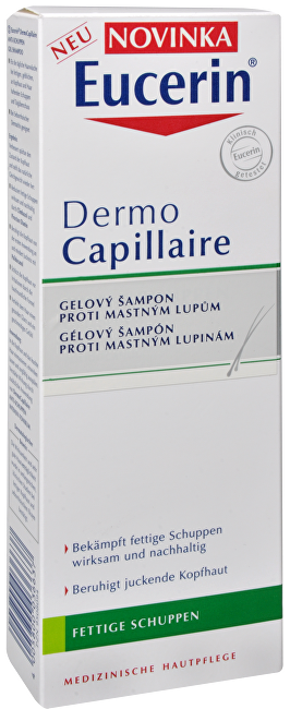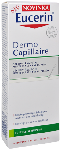 Gelový šampon DermoCapillaire proti mastným lupům je vhodný pro odstranění nažloutlých ložisek lupů u vlasových kořínků.