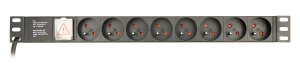 8 francouzských (českých) zásuvek, zásuvky s bezpečnostními krytkami, montovatelné do racku 1U