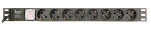 Power distribution unit (PDU), 8 Schuko sockets, 1U, 16A, 3 m cable *8 x zásuvky typu Schuko *Zásuvky s bezpečnostními clonkami *Možnost montáže do racku 1U