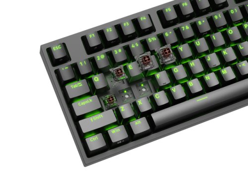 NOVÉ SPÍNAČE, VĚTŠÍ PŘESNOST Očekáváte plynulý pohyb a dynamiku, které vám pomohou dominovat nad soupeři? Tomu dobře rozumíme, a proto jsme Genesis THOR 404 TKL vybavili pokročilými spínači Kailh Box Brown V2 s nelineární charakteristikou. Výdrž 80 milionů kliknutí, aktivace po stisknutí 2 mm a aktivační síla pouhých 55 g, to není vše. V kombinaci s dobou odezvy 1 ms nabízejí spínače Kailh Box Brown V2 výrazně lepší zážitky ve srovnání s klasickými spínači Kailh Box Brown. Výraznější návrat spínače do výchozí polohy a větší přehlednost. Chcete zlepšit svůj herní výkon? Můžete se na to spolehnout.