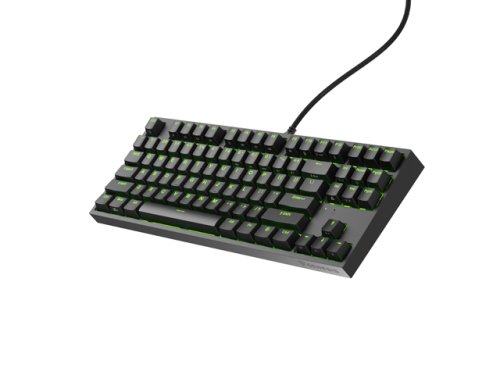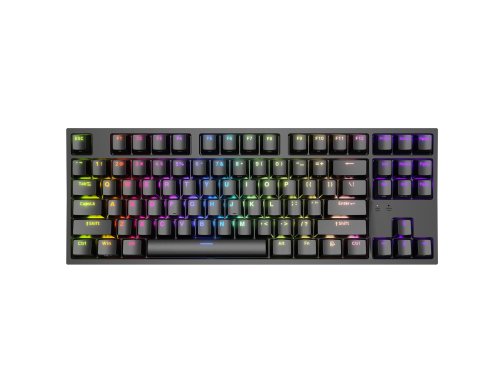 SPECIFIKACE: Komunikace: Kabelové připojení Rozhraní: USB Specializace: Herní Layout: US Mechanismus kláves: Mechanický Model spínačů: Kailh Box Brown V2 Typ spínače: Klikací Typ klávesnice: TKL Podsvícení: Ano Barva podsvícení: RGB Počet režimů podsvícení: 18 Délka kabelu: 180 cm Počet tlačítek: 87 Multimediální klávesy: Ano Počet multimediálních tlačítek: 11 Životnost kláves: 80 mil. Frekvence vzorkování: 1 000 Hz Bod aktivace: 2 mm Akční síla: 55 g Doba odezvy: 1 ms Profil: Ne Podporované operační systémy: Windows 8 Windows 7 Windows 11 Windows 10 Android Software: Ano Hardwarové požadavky: Zařízení s portem USB-A Technologie potisku kláves: Dvojité vstřikování Vestavěná paměť: Ano Profil přepínače: Vysoký Konstrukce: Konstrukce bez plovoucích kláves (uzavřená) Standardní rozložení: ANSI Materiál: ABS Funkce: Vyměnitelné spínače "HOT SWAP" Dostupné profily Dostupná makra Záznam maker: Ano Anti-ghosting: Ano Konektory: USB typu A Opletený vodič: Pryžová vrstva Barva: Černá Napájení: USB (5V) Dodávané příslušenství: Klip, 2 náhradní mechanické spínače Délka: 358 mm Šířka: 133 mm Výška: 38 mm Hmotnost: 1005 g