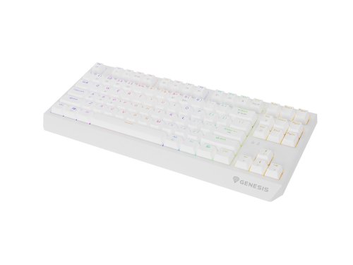 JEŠTĚ ČITELNĚJŠÍ Čitelné, přesně takové jsou klávesy na klávesnici GENESIS Thor 230 TKL Wireless. Při jejich navrhování jsme se zaměřili nejen na jejich zpracování, odolnost a materiál příjemný na dotek, ale také na čitelnost laserem vyřezaných doplňkových znaků. Od nynějška jsou ještě zřetelnější a umožňují pohodlnější práci s plně přizpůsobitelným podsvícením Prismo Effect™ s 16 miliony barev a 25 režimy.