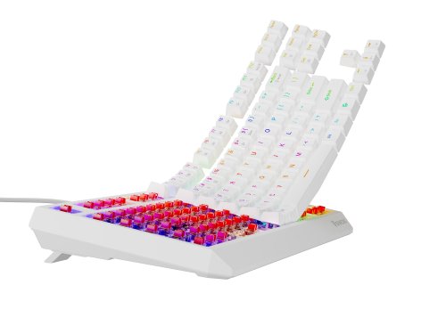 HRAJTE PODLE SVÝCH PRAVIDEL Klávesnici Genesis Thor 230 TKL jsme vybavili lineárními spínači Outemu Red, které vynikají vysokou přesností, aktivací bez ohledu na místo stisknutí klávesy a vysokou dynamikou. Víme však, že jako hráč můžete mít své vlastní preference. Proto jsme do Genesis Thor 230 TKL implementovali Hot Swap - techniku, která vám umožní nahradit jakýkoli třípinový mechanismus mikrospínačem od společností jako Outemu, Akko, KTT. Jednoduše vytáhněte nainstalovaný mechanismus a zapojte nový. Díky systému Hot Swap také nemusíte kupovat novou klávesnici, když jeden spínač selže. Vyměníte jej během několika sekund. Je to jednoduché.