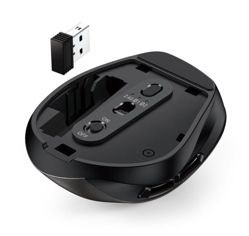 Ergonomická bezdrátová myš disponující optickým senzorem s nastavitelným rozlišením až 2400 DPI. Připojení k počítači je realizováno bezdrátově skrze Bluetooth nebo miniaturní USB přijímač a rozhraní 2,4 GHz. Myš se dokáže připojit až ke 3 zařízením zároveň, mezi nimi pak můžete přepínat stiskem jediného tlačítka (Dual BT režim + 2,4 GHz).