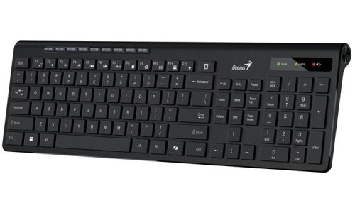 Klávesnice GENIUS Slimstar 7230, která vám díky ergonomickému sklonu a bezdrátové konektivitě umožní pracovat bez omezení. Klávesnice je vybavena chiclet klávesami, které umožní rychlé a komfortní psaní. Nechybí numerický blok pro pohodlné zadávání číselných znaků. Pro bezdrátové připojení slouží miniaturní USB adaptér, který využívá na 2.4GHz frekvenci. Díky elegantnímu designu se skvěle hodí na každý pracovní stůl.