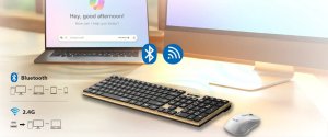 Bezdrátová Bluetooth klávesnice s podporou Copilot AI a duálním připojením pro efektivní práci.