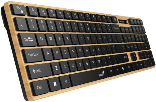 Genius SlimStar 7250BT představuje moderní bezdrátovou klávesnici s elegantním designem inspirovaným severským borovým dřevem. Nabízí duální připojení prostřednictvím Bluetooth 5.0 nebo 2,4GHz bezdrátové technologie s dosahem až 10 metrů. Klávesnice je ideální pro širokou škálu zařízení včetně stolních počítačů, notebooků, mobilních telefonů, tabletů i chytrých televizorů.