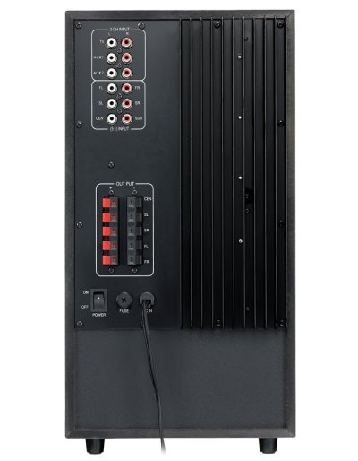 Systém reproduktorů v konfiguraci 5.1 nabízí celkový výkon 200 W. Sestava v dřevěném provedení je tvořena kvalitním subwooferem s 8" reproduktorem, který disponuje integrovaným zesilovačem a výkonem 75 W. Subwoofer je doplněn čtyřmi satelity a jedním středovým reproduktorem s výkonem 4 x 24 W + 1 x 30 W. Součástí balení je napájecí adaptér 100-240 V a dálkové ovládání.