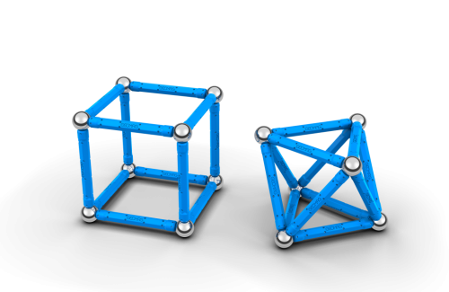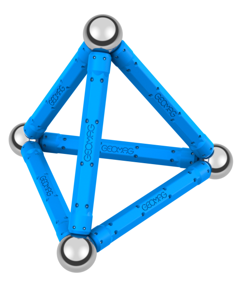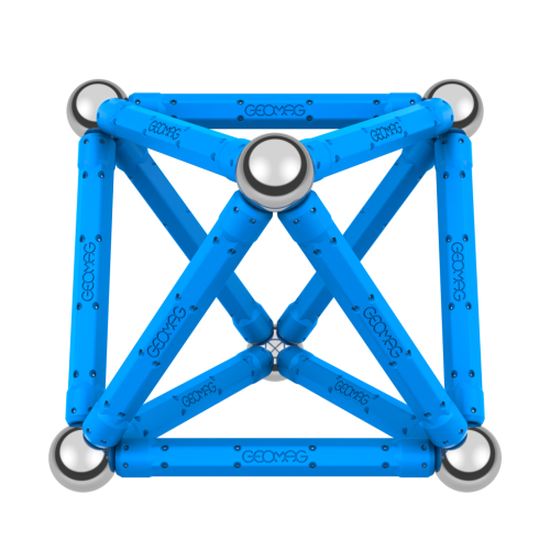 Naučte se stavět geometrické tvary i tělesa s pomocí magnetické stavebnice Geomag. Obsahuje 32 modrých magnetických tyček a 16 ocelových kuliček.