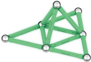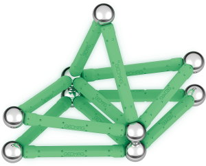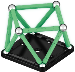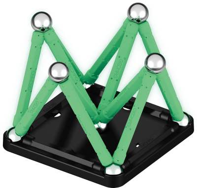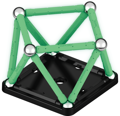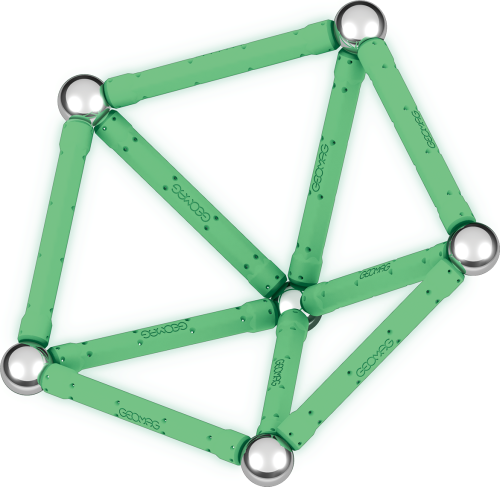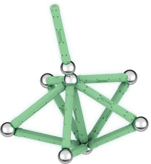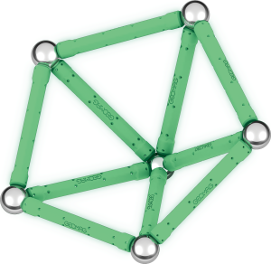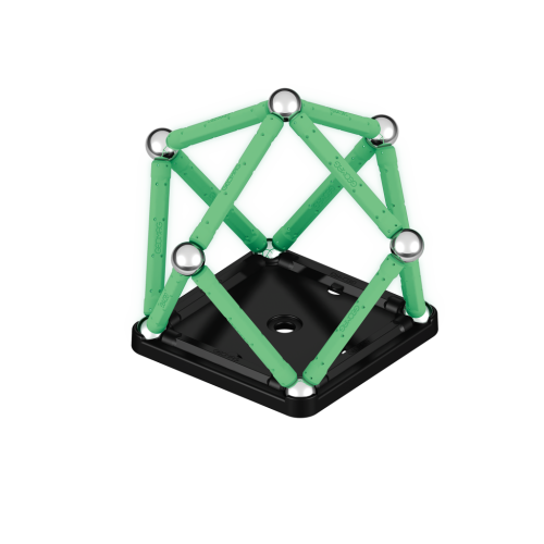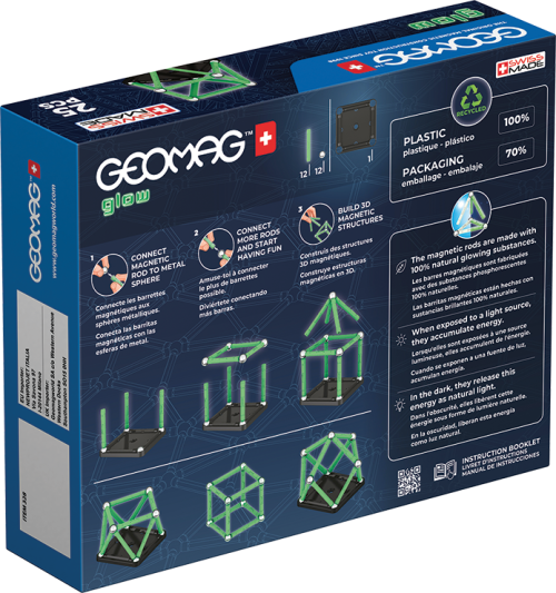 Geomag Glow 25 dílků je magnetická stavebnice, která přináší inovativní zážitek díky svítícím tyčkám, které ve tmě září. Tento unikátní efekt podtrhuje kreativní možnosti konstrukcí a zároveň zvyšuje atraktivitu hry. Sada obsahuje celkem 25 dílků – dvanáct svítících magnetických tyček, dvanáct kovových kuliček a jeden černý stabilní podstavec ve tvaru čtverce, který slouží jako pevná základna pro stavbu různých 3D struktur.