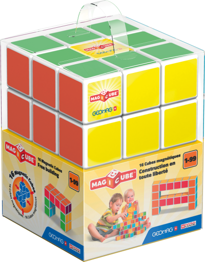 Magnetické kostičky s unikátní vnitřní konstrukcí, díky které se vzájemně přitahují ze všech stran. Navíc každá stěna má jinou barvu. Vhodné i jako vzdělávací pomůcka do škol pro výuku matematiky a geometrie. Obsahuje 16 magnetických kostiček. Vyrobeno ve Švýcarsku, z recyklovaného plastu, vhodné od 1 roku.
